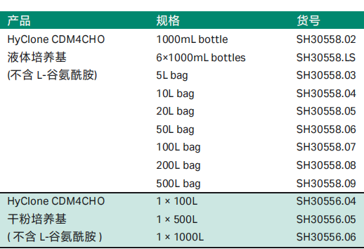 CDM4CHO 培养基是一种化学成分限定,无动物来源的培养基。这种法规遵从性的培养基是 HyClone 通过代谢途径设计方法进行开发,用于提高各种 CHO细胞株表达重组蛋白的产量。