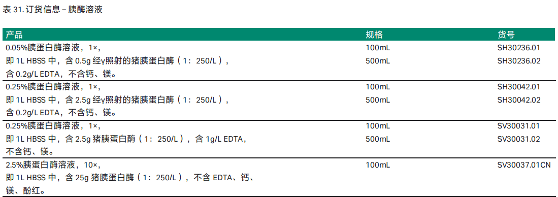 以开展细胞培养。HyClone可提供多种常用浓度的γ照射猪胰蛋白酶溶液,并提供不同缓冲体系。