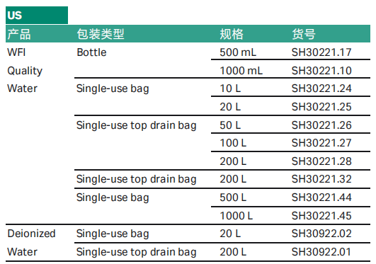 Cytiva HyClone 科研、制药用水和缓冲盐溶液WFI 级超纯水系列产品