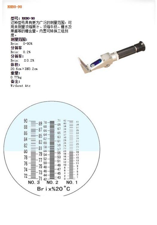 | RHB0-90 | Brix: 0-90% | Brix: 0.2% | Brix: ±0.2% | Without Atc |