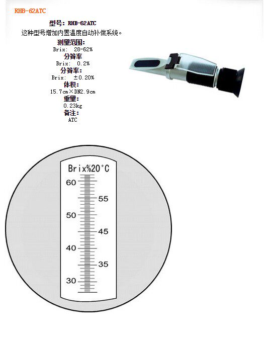 | RHB-62ATC | Brix: 28-62% | Brix: 0.2% | Brix: ±0.20% | ATC |