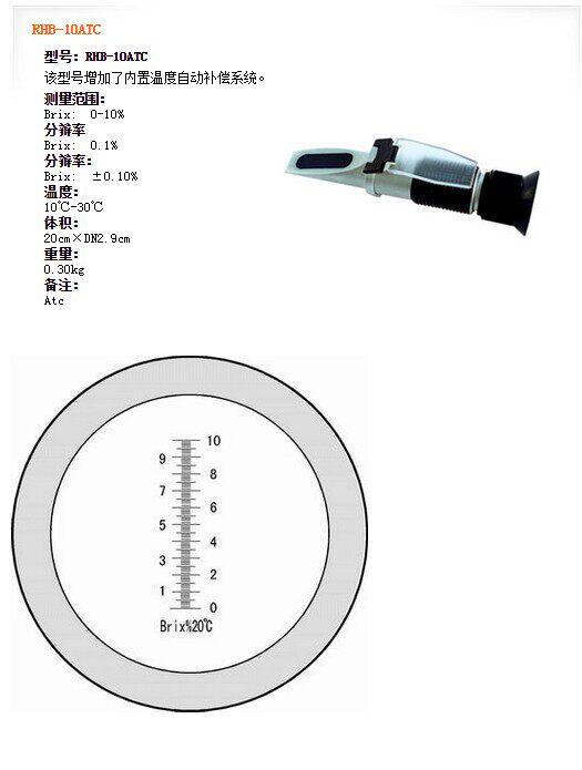 | RHB-10ATC | Brix: 0-10% | Brix: 0.1% | Brix: ±0.10% | Atc |
