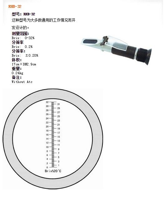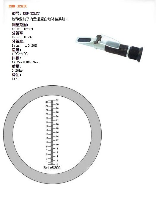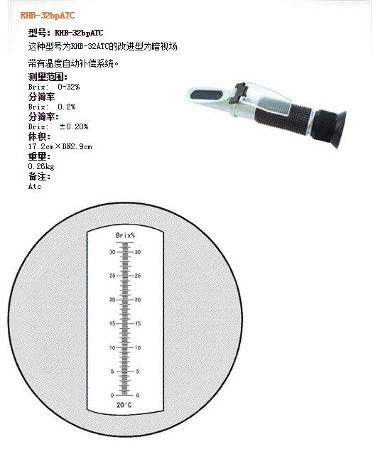 | RHB-32ATC | Brix: 0-32% | Brix: 0.2% | Brix: ±0.20% | Atc |