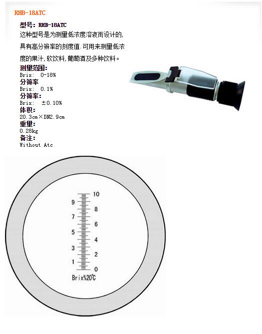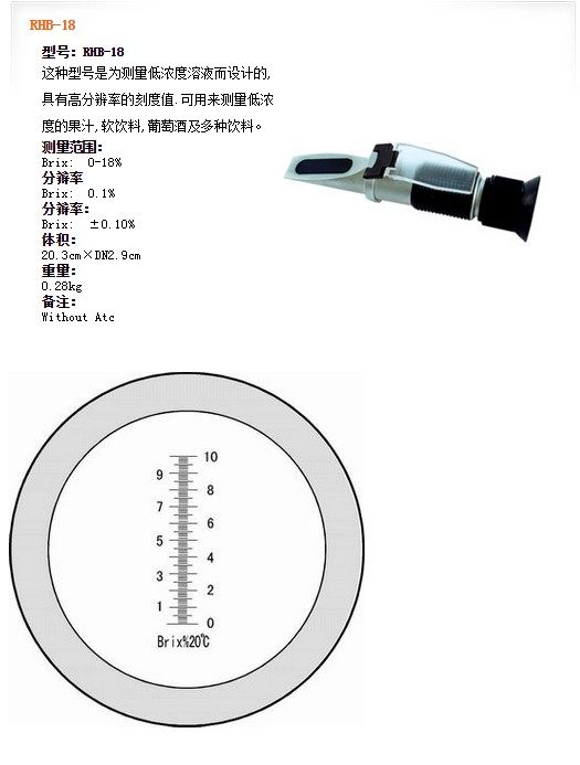 | RHB-18ATC | Brix: 0-18% | Brix: 0.1% | Brix: ±0.10% | With Atc |
