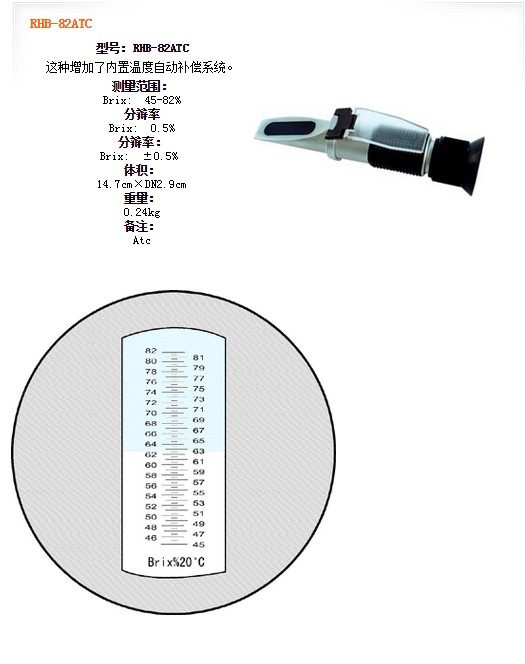 | RHB-82ATC | Brix: 45-82% | Brix: 0.5% | Brix: ±0.5% | Atc |