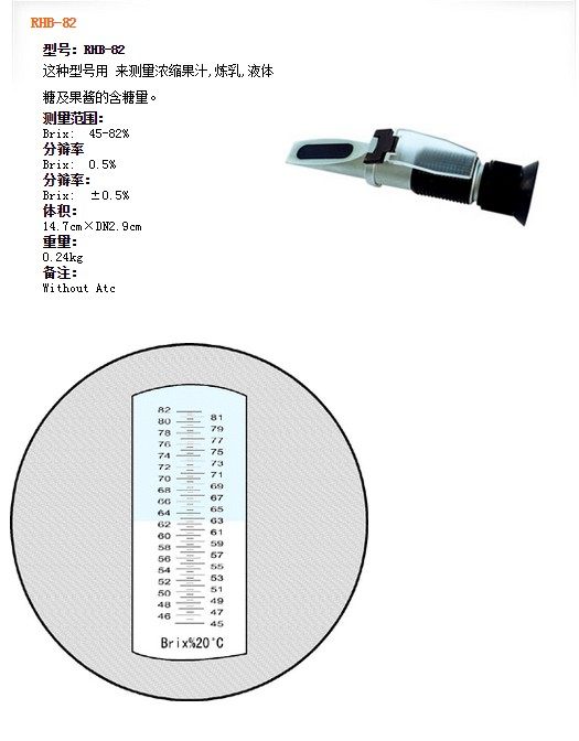 | RHB-82 | Brix: 45-82% | Brix: 0.5% | Brix: ±0.5% | Without Atc |