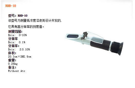 | RHB-10 | Brix: 0-10% | Brix: 0.1% | Brix: ±0.10% | Without Atc |