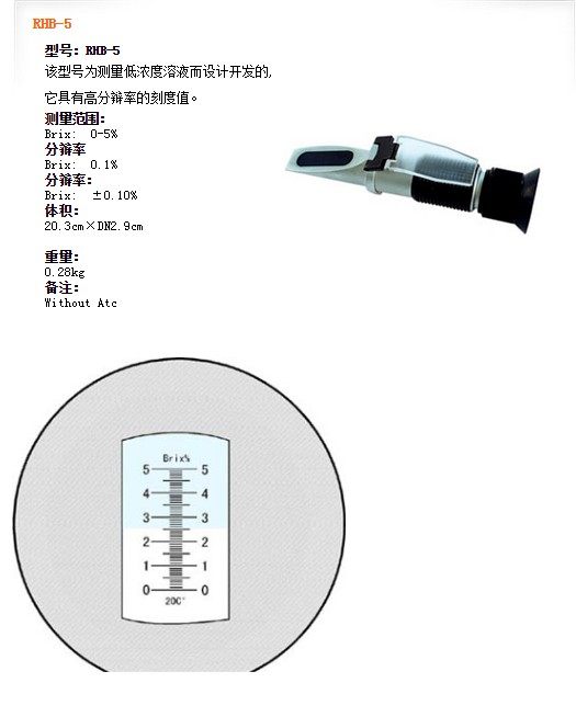 | RHB-5 | Brix: 0-5% | Brix: 0.1% | Brix: ±0.10% | Without Atc |