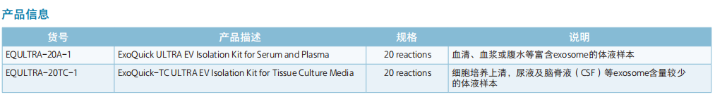 注:试剂盒中 ExoQuick PLUS Microsphere Beads,每个单位基于适 5mL细胞培养样本。