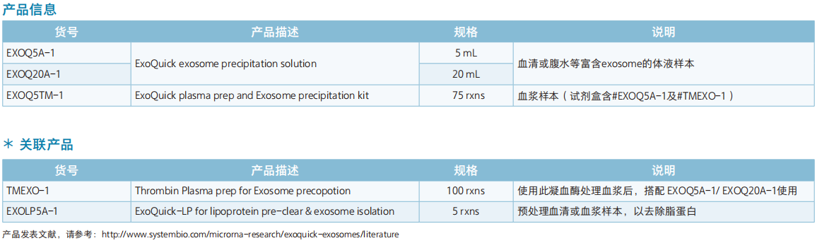 注:试剂盒中 ExoQuick PLUS Microsphere Beads,每个单位基于 250μL血清样本。如果是血浆样本,则需另外购买凝血酶素(货号 TMEXO-1)预处理后,再搭配此试剂盒使用。