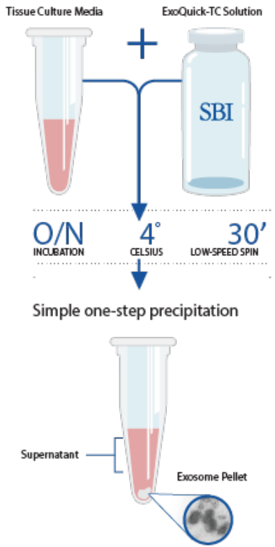 SBI的ExoQuick-TC可以从低体积(低至1 ml)的组织培养基和某些 生物流体(唾液,尿液,卵泡液和母乳)中高通量,定量分离外泌体。
