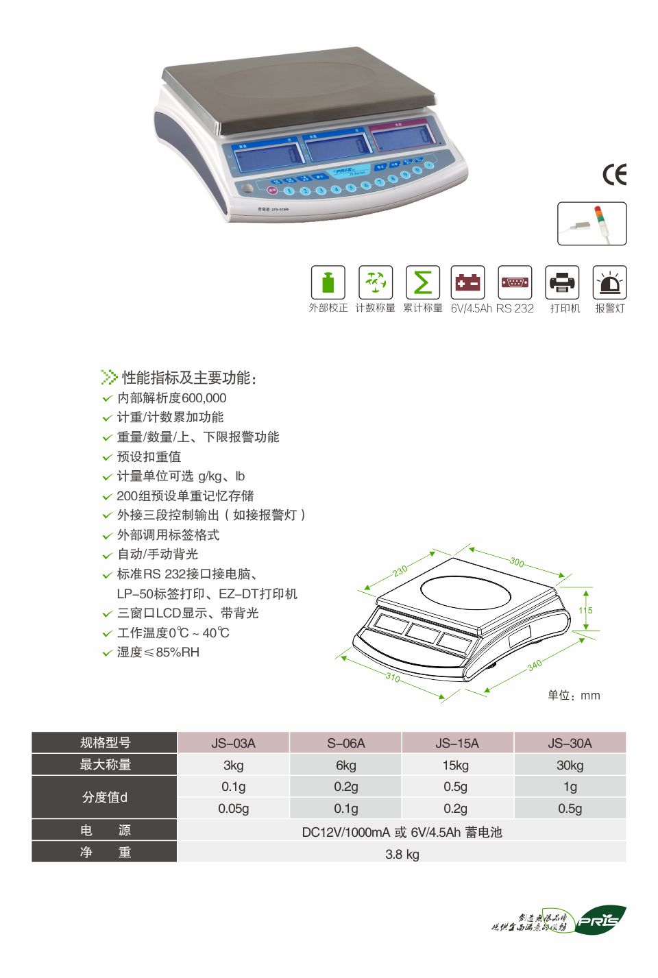 普瑞逊JS-03/06/15/30B电子计数天平秤