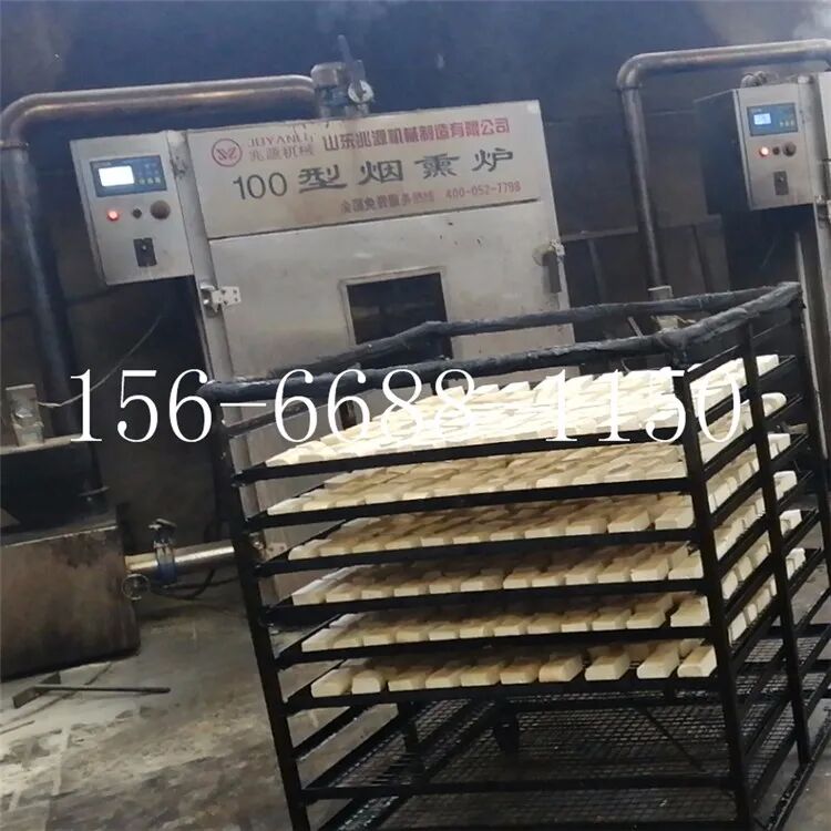 豆腐干上色设备我有一个贵州铜仁的客户,采购我们50型烟熏炉来加工豆干,加工的效果很好,设备环保无烟熏制,产量越来越大,一年之后又来找我采购了一台150型的烟熏炉,铜仁豆干烟熏炉现在日产量已经达到了2000多斤。