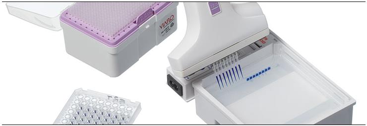 VOYAGER 多道电动移液器可选规格有 8 道和 12 道。容量范围: 0.5-12.5ml 、 5-125 ml 、 10-300 ml 和 50-1250 ml。