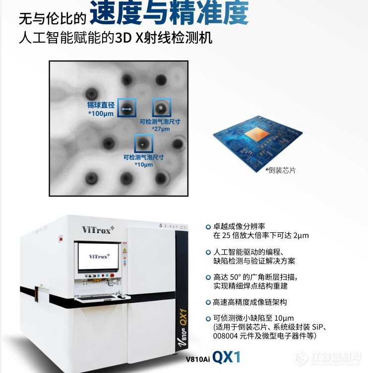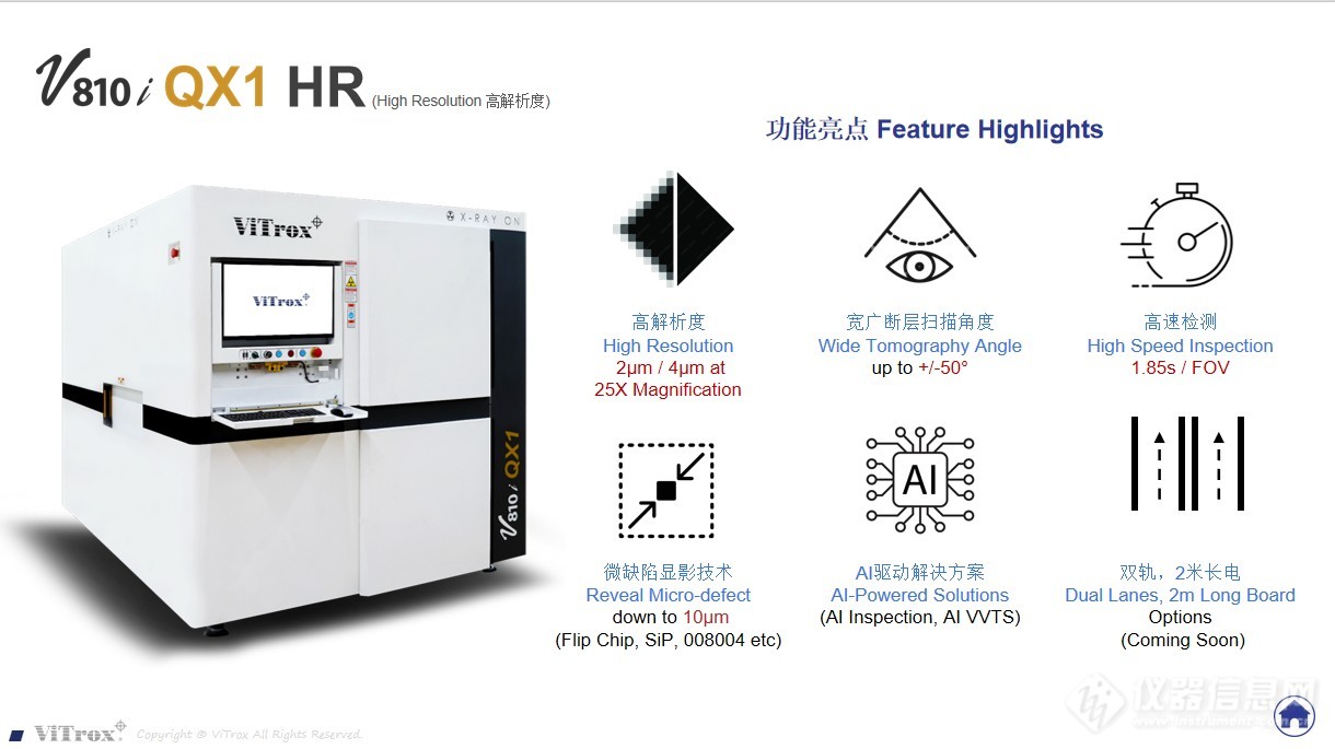 V810 在线3D X-RAY 专为各种尺寸的 PCB 组件而设计 提高电子制造服务的生产效率和成本节约 (EMS)、原始设备制造商 (OEM)、原始设计制造商 (ODM) 等。先进的在线3D X-RAY射线检测系统 (V810i S3)以及2025年最新推出的Vitrox 3D X-RAY V810AI QX1 ,