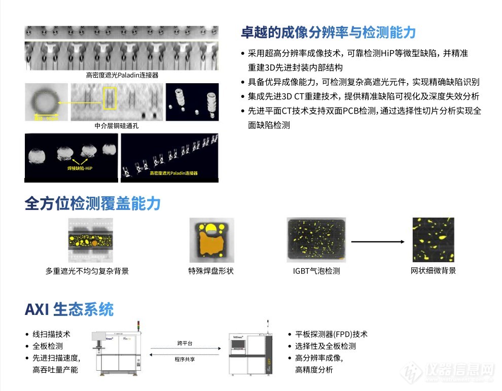提供一流的顶板间隙和工业4.0配备功能以确保高质量检测结果的智能V810i在线3D X-RAY系统。适用于大型板的完整解决方案以及快速编程,支持低混合高容量和高混合低容量检测。提供切片视图(3D模型)来对缺陷进行复判,从而提升缺陷复判信心。同时,它生成的缺陷故障分析图以方便用户做进一步的提升制程品质。