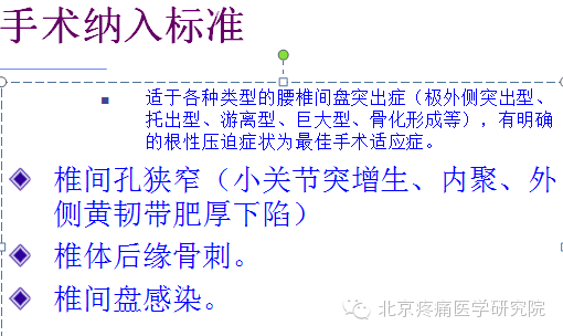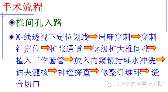 二、1997年yeung等研制出了脊柱内镜手术系统,形成了YESS技术,真正实现了经皮内窥镜下腰椎间盘髓核摘除术(Perculaneous Endoscopic Lumbar Discectomy,PELD)。此技术入路经由安全三角区进入椎间盘,因不经硬膜外腔,所以、操作相对安全、简单,自椎间盘内向外切除椎间盘组织(inside –out由内向外技术)。此技术由于受上关节突关节遮挡,不能对受压神经根进行直接减压。