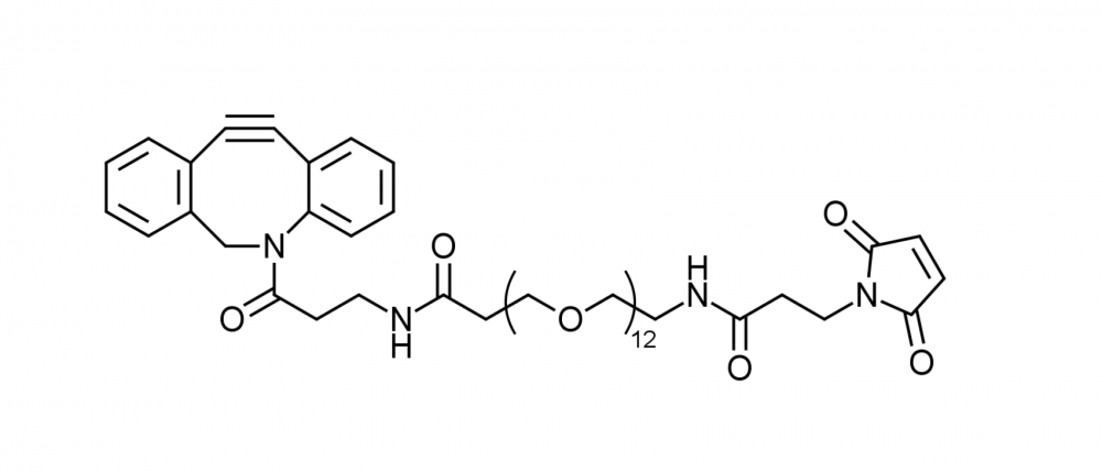 产品描述:Heterobifunctional reagents are used for converting azido-containing biomolecules into TCO-modified biomolecules. TCO-PEG12-DBCO can serve as a heterobifunctional azide-to-tetrazine cross-linker for covalently linking azido- and tetrazine-modified peptides or biopolymers.
