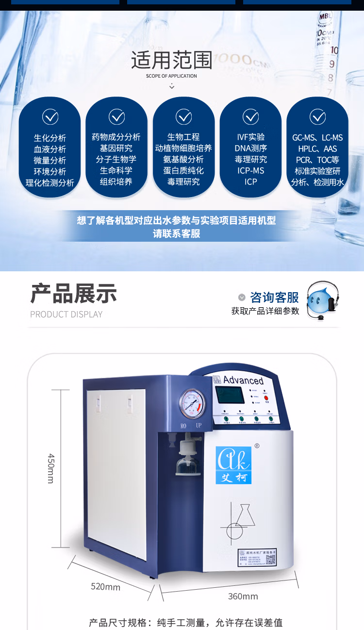 艾柯实验室专用超纯水机设备可用于各种行业与各种类型的实验室纯水超纯水制取,设备制水效果好,效率高。艾柯专注纯水设备领域20年,有丰富和成熟的技术经验与资质实力,并且为每一位用户提供完善周到的售后服务,设备都是工厂生产销售,咨询订购请联系艾柯实验室纯水设备厂家:(185)-(0288)-(4972),同薇信,(来电请说明平台来源)。