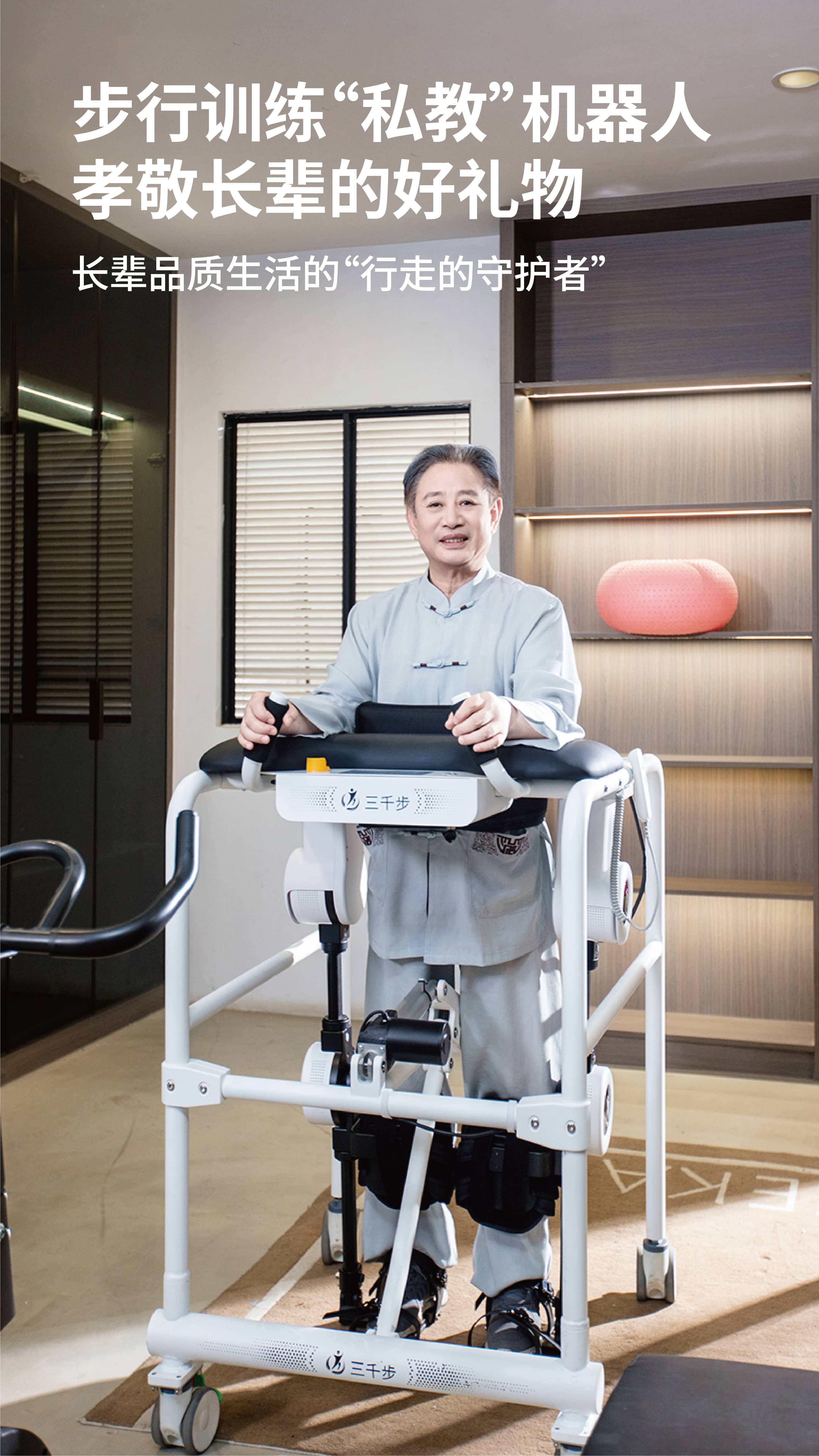 三千步下肢外骨骼机器人,既可用于医院场景的康复训练,又将康复从医院延伸到社区,乃至家庭,有效缓解康复医疗资源紧张,降低康复成本,提升康复体验等。