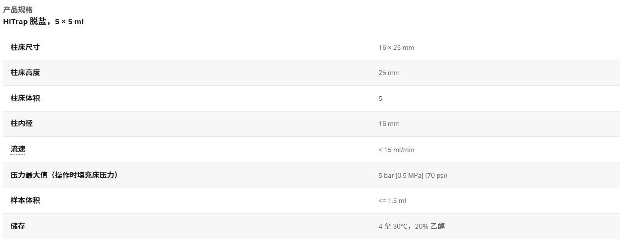 HiTrap 脱盐柱是即用型 5 mL 层析柱,预装有 Sephadex G-25 Superfine 层析填料,可快速便利地进行脱盐和缓冲液置换。