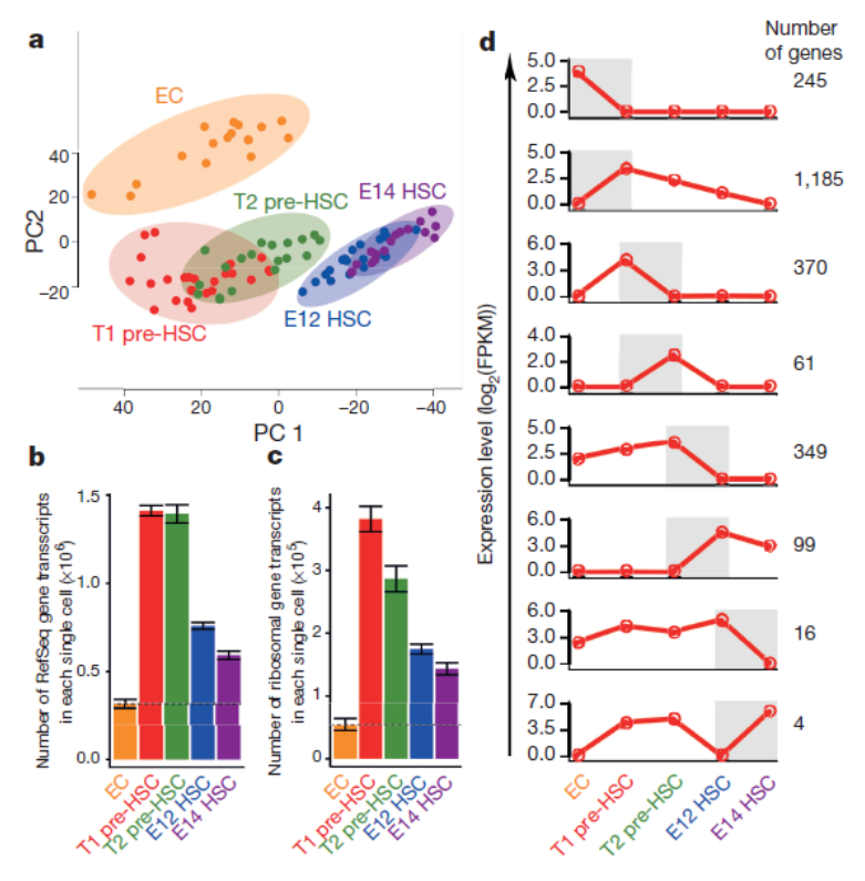 图 单细胞 RNA 测序应用:HSC 发育过程中的基因动态图谱 [7]