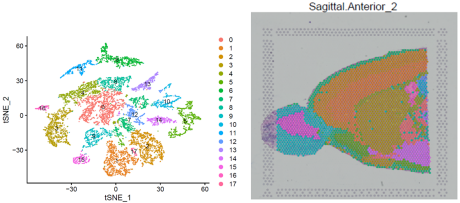 图 基于 spot 的 cluster 分类(t-sne 图)和 cluster 在切片上的分布