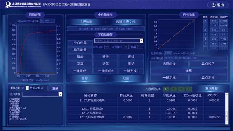 打开前处理开关、主机开关和电脑开关,运行测油仪软件,自检完成后点击样品测试“维护”按钮,完成后把主机等全部关闭即可。